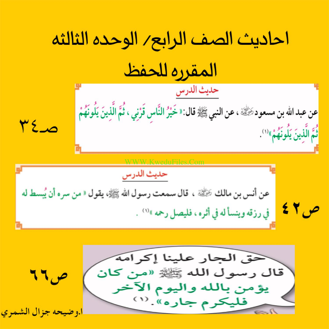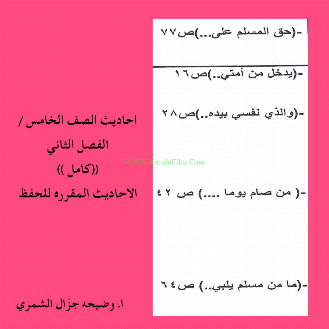 اليكم الاحاديث المقررة للمرحلة الابتدائية للكورس الثاني