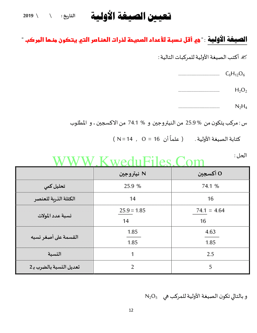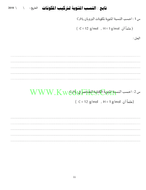 اوراق عمل للمعادلة الكيميائية, احمد حسين, الصف العاشر, كيمياء, الفصل الثاني, 2018-2019 - المناهج الكويتية