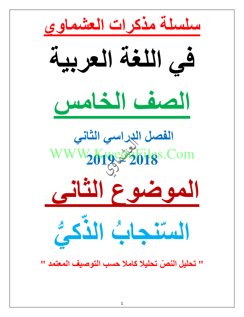 معلومات الملف: اليكممذكرةدرس السنجاب الذكي للعشماوي حسب التوصيف 2018/2019في مادة اللغة العربية للصف الخامس للكورس الثاني | ||