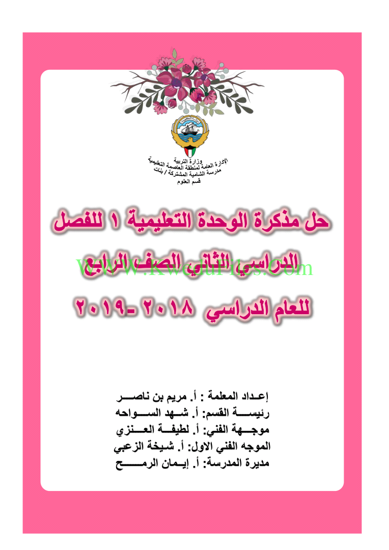 معلومات الملف: اليكم حل الوحدة التعليمية الاولى في مادة العلوم للصف الرابع للكورس الثاني | ||