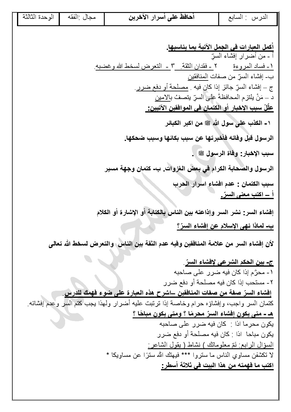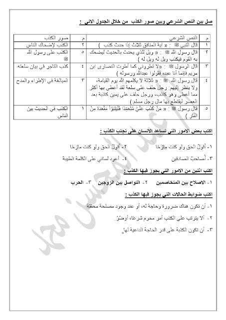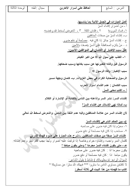 مذكرة في مادة التربية الاسلامية للصف السابع للفصل الدراسي الثاني عدد اوراق هذا الملف 20 ورقة وتتضمن اسئلة مهمة ولكن لاتغني عن الكتاب المدرسي