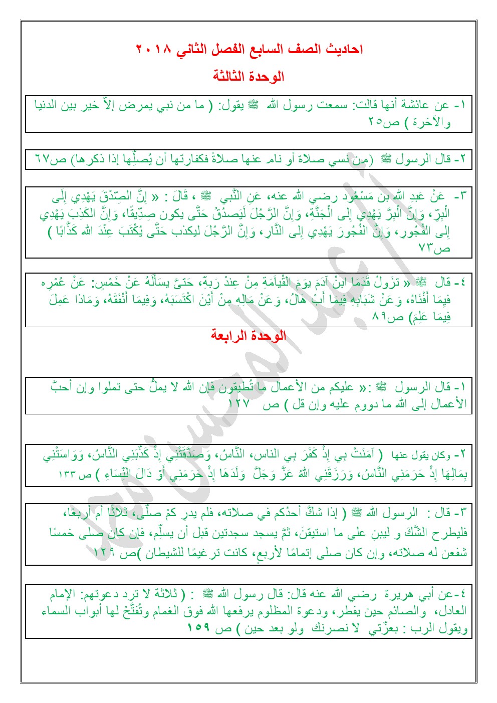 أحدث ملفات الصف السابع, تربية اسلامية, الفصل الثاني