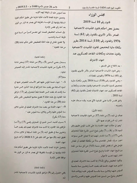 | .نشر قانون التقاعد المبكر بالجريدة الرسمية "الكويت اليوم" ويُعمل به اعتبارا من ١ ابريل | ||