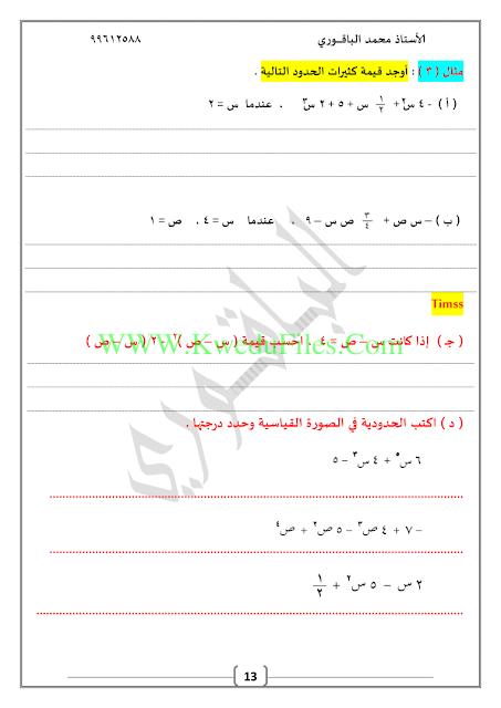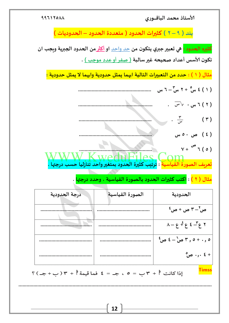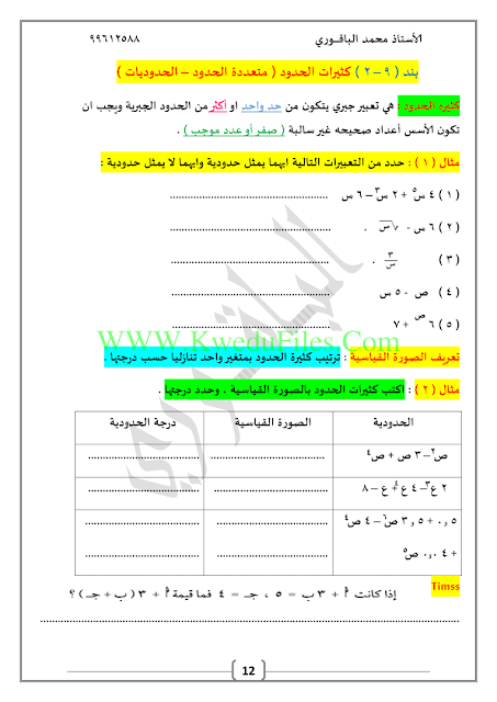 | أنت هنا: موقع المناهج ⇦ المناهج الكويتية ⇦ الصف الثامن ⇦ رياضيات ⇦ الفصل الثاني ⇦ مذكرات وبنوك |