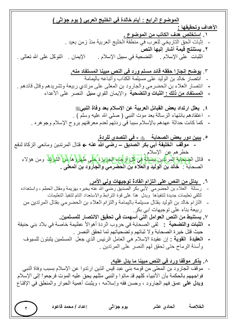 اليكم الخلاصة لدرس (يوم جؤاثى) في مادة اللغة العربية للصف الحادي عشر للكورس الثاني