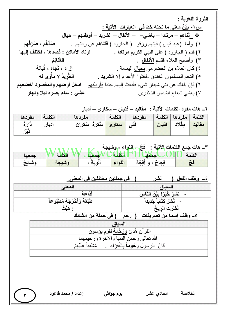 أحدث ملفات الصف الحادي عشر