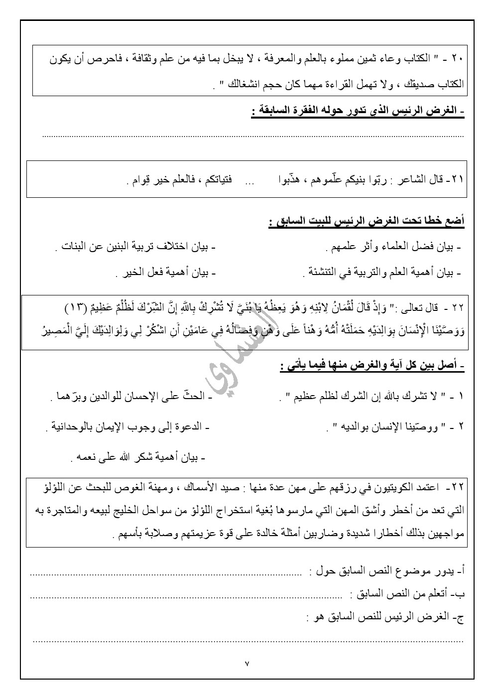 7. أسئلة الاختبار النهائي لمنطقة الفروانية التعليمية