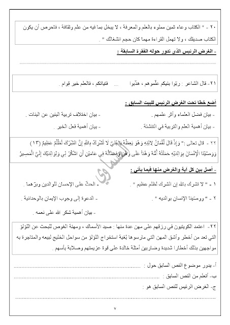 أنت هنا: موقع المناهجالمناهج الكويتية الصف السابع لغة عربية الفصل الثاني مذكرات وبنوك