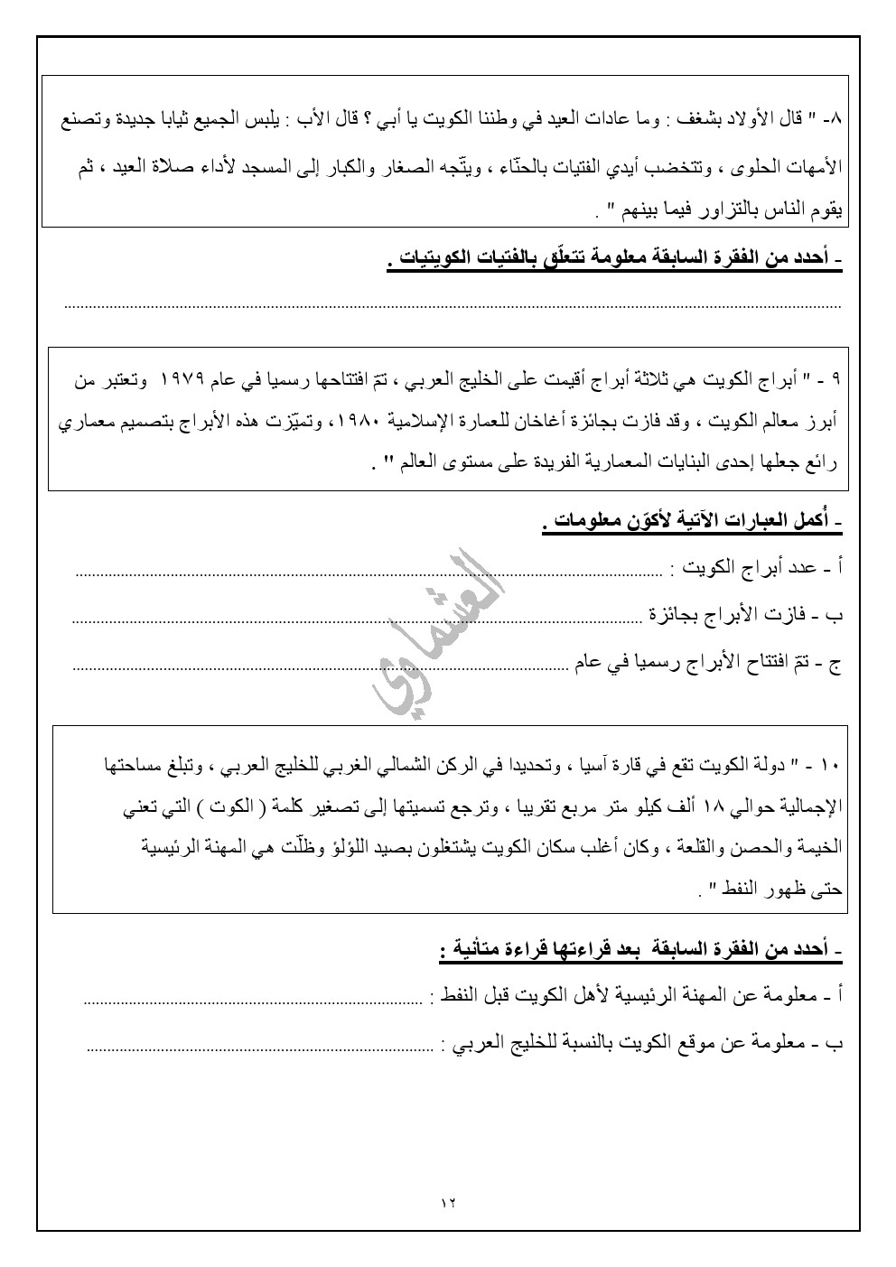12. أسئلة الاختبار النهائي لمنطقة الجهراء التعليمية