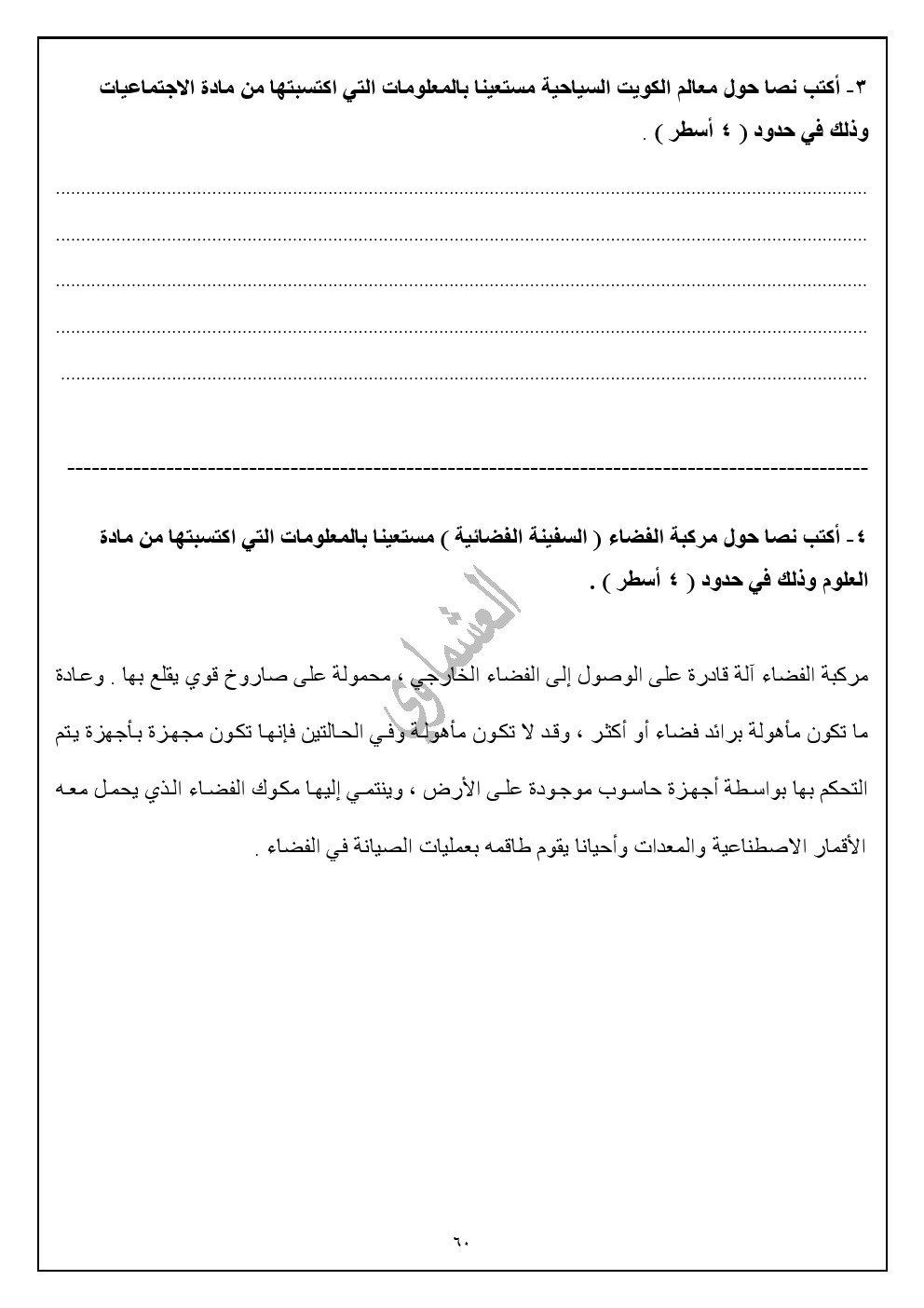 3. نموذج إجابة منطقة مبارك الكبير التعليمية