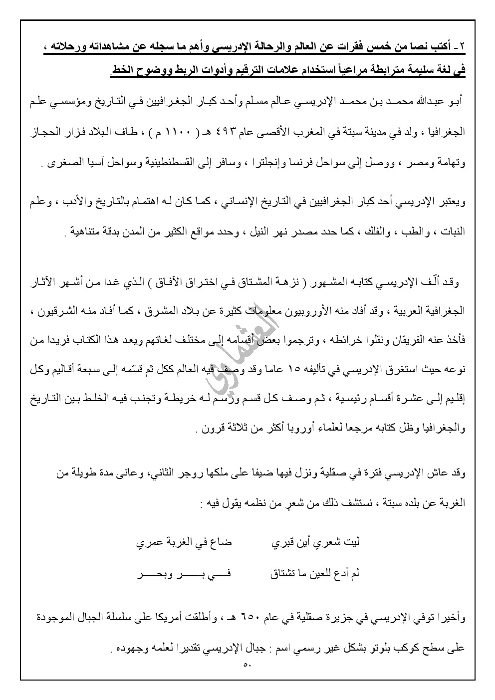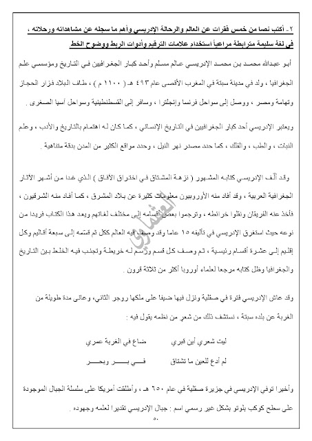5. نموذج إجابة منطقة العاصمة التعليمية