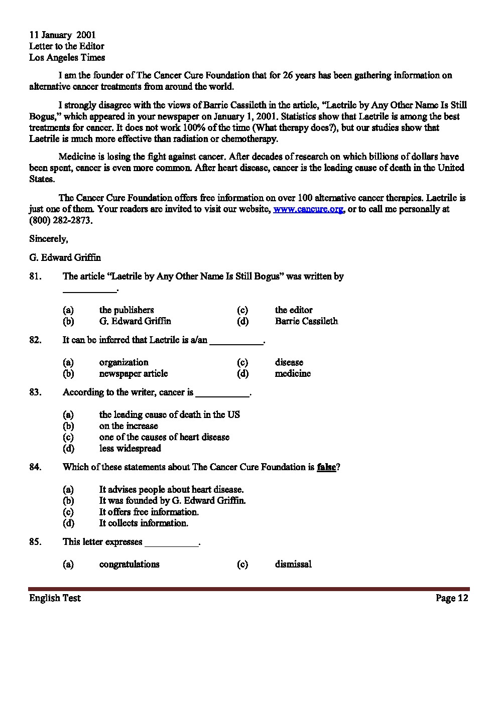 اختبار القدرات الأكاديمية في اللغة الانكليزية نموذج3