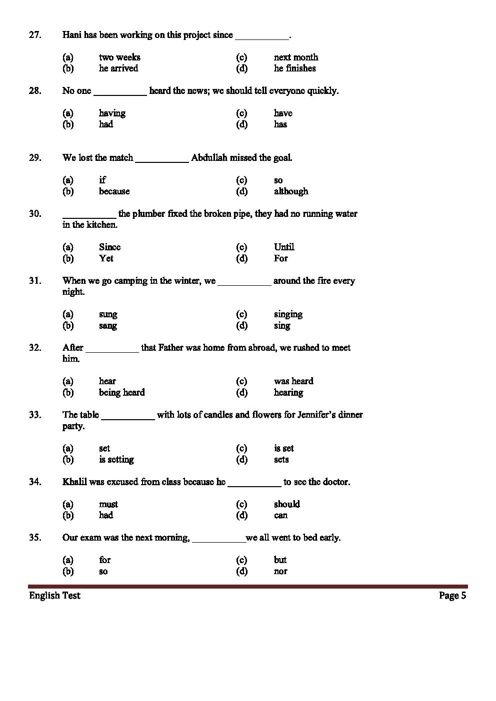 5. اختبار القدرات الأكاديمية في اللغة الانكليزية نموذج3