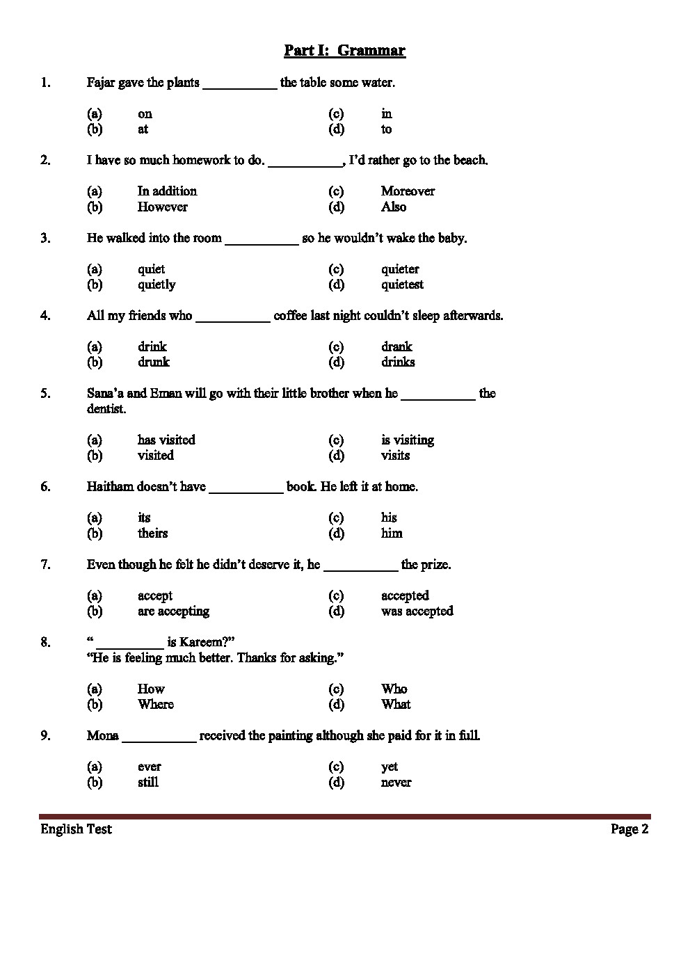 | اختبار القدرات الأكاديمية في اللغة الانكليزية نموذج3 | ||