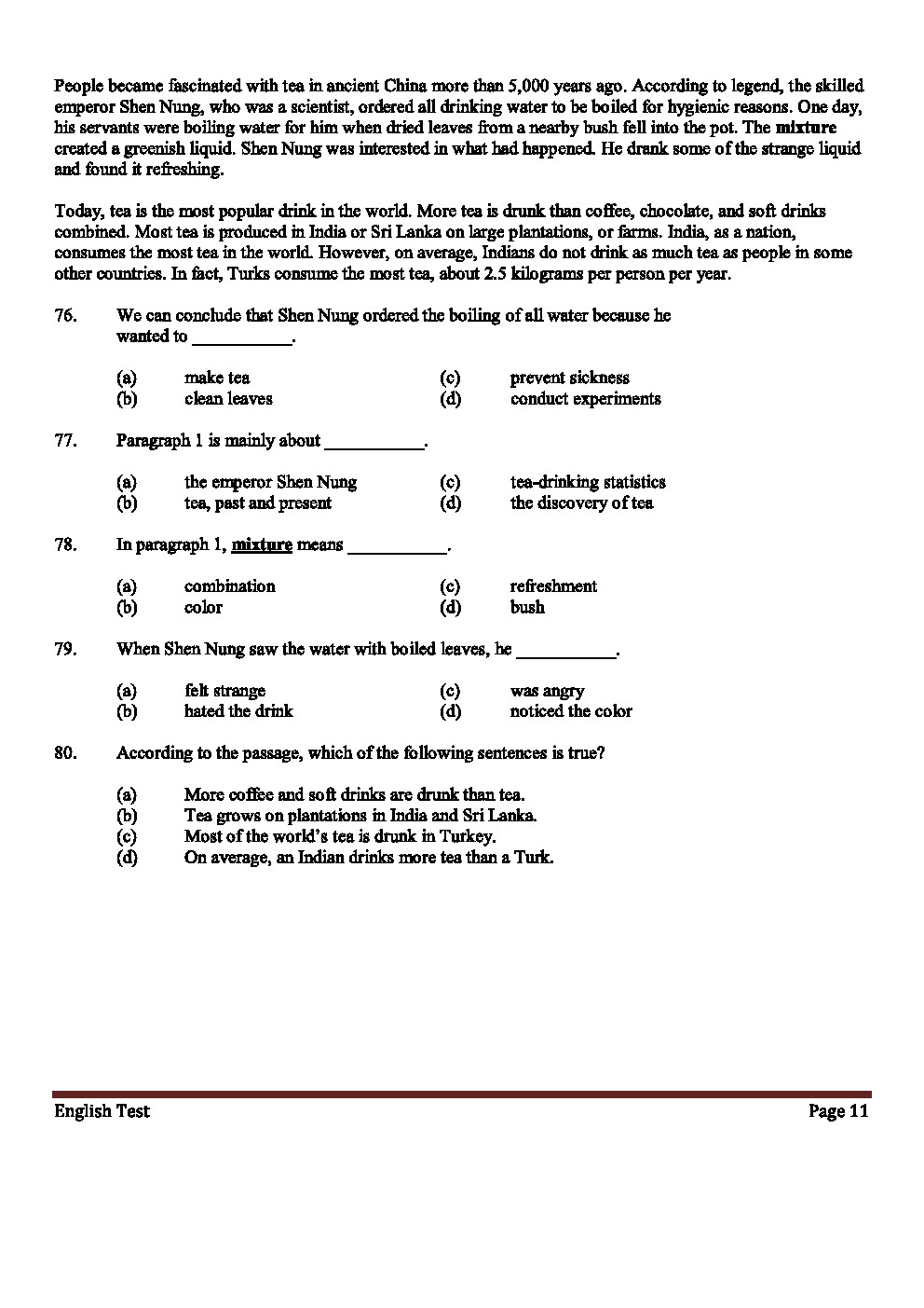 11. لغة انجليزية, الفصل الثاني, 2017-2018, اختبار القدرات الأكاديمية في اللغة الانكليزية نموذج3