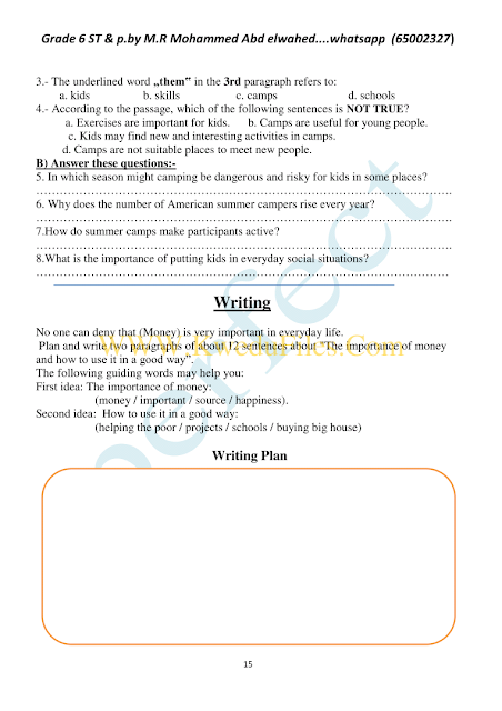 9. تدريبات مراجعة للفاينل مرفقة بالإجابة