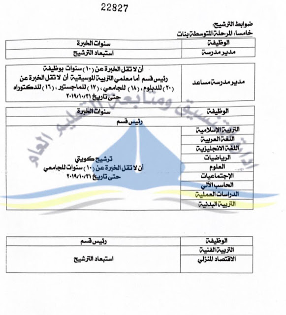 ضوابط الوظائف الإشرافية للعام الدراسي /2018, أخبار, التربية, الفصل الثاني, 2018-2019