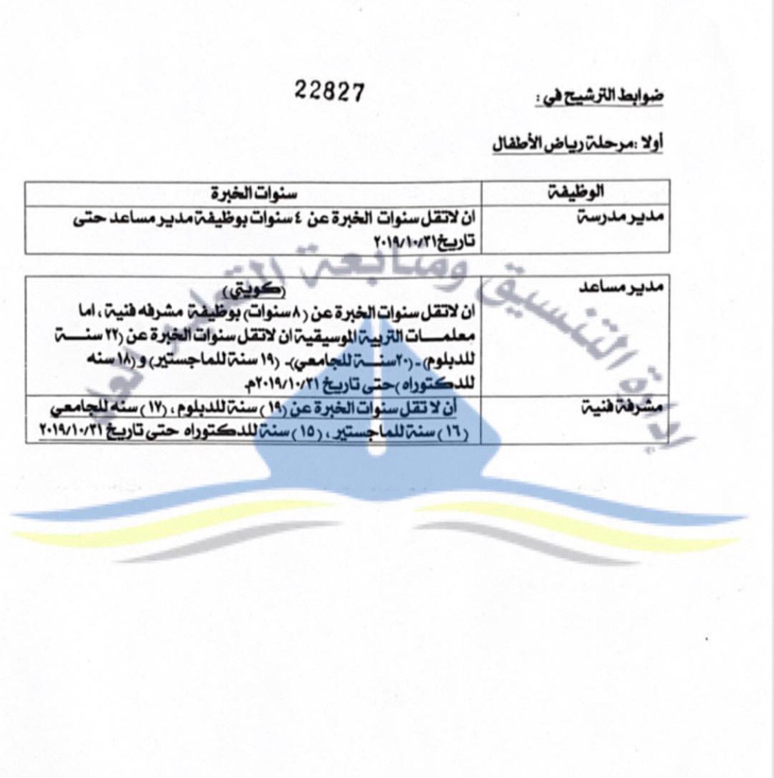 اليكم ضوابط الوظائف الإشرافية للعام الدراسي 2019/2018