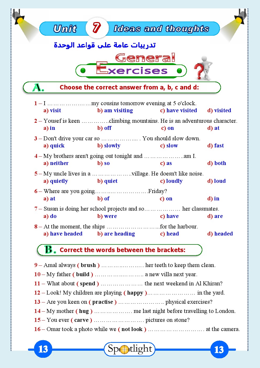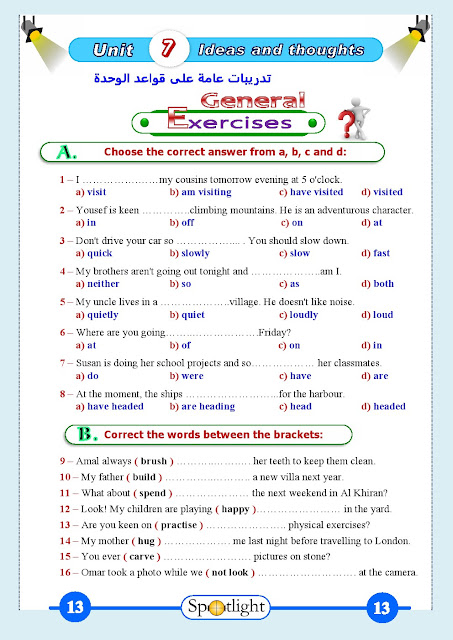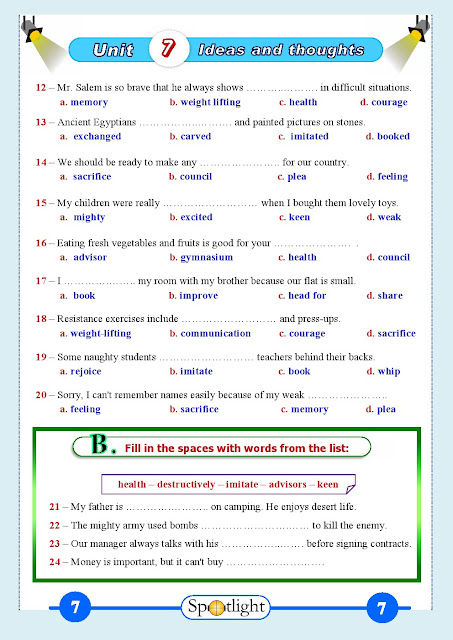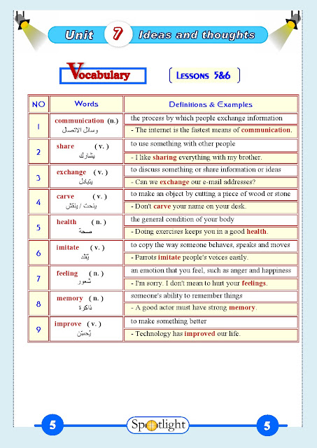 الوحدة السابعة في مادة اللغة الانكليزية للصف الثامن للفصل الدراسي الثاني عدد اوراق هذا الملف 19 ورقة ويتضمن الوحدة السابعة