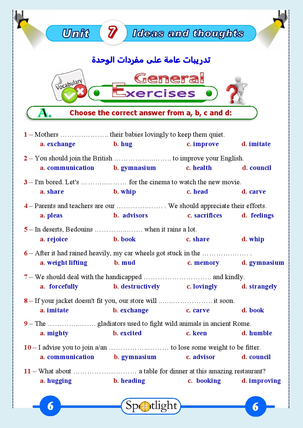 6. لغة انجليزية, الفصل الأول, 2025-2026, حل الوحدة الأولى من كتاب الطالب