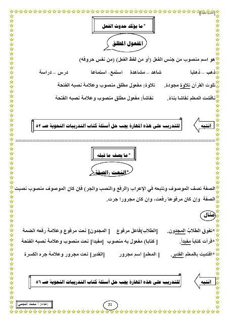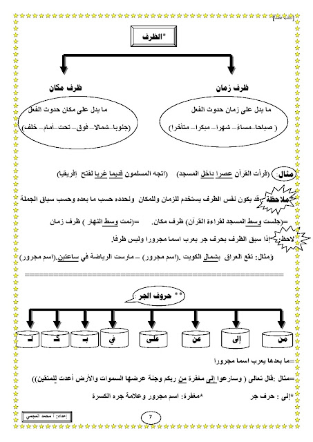 7. لغة عربية, الفصل الأول, 2025-2026, علامات الإعراب الفرعية