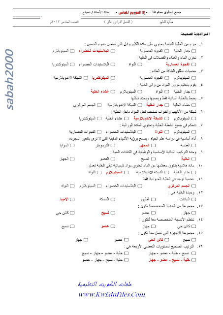 | أنت هنا: موقع المناهج ⇦ المناهج الكويتية ⇦ الصف السادس ⇦ علوم ⇦ الفصل الثاني ⇦ مذكرات وبنوك |