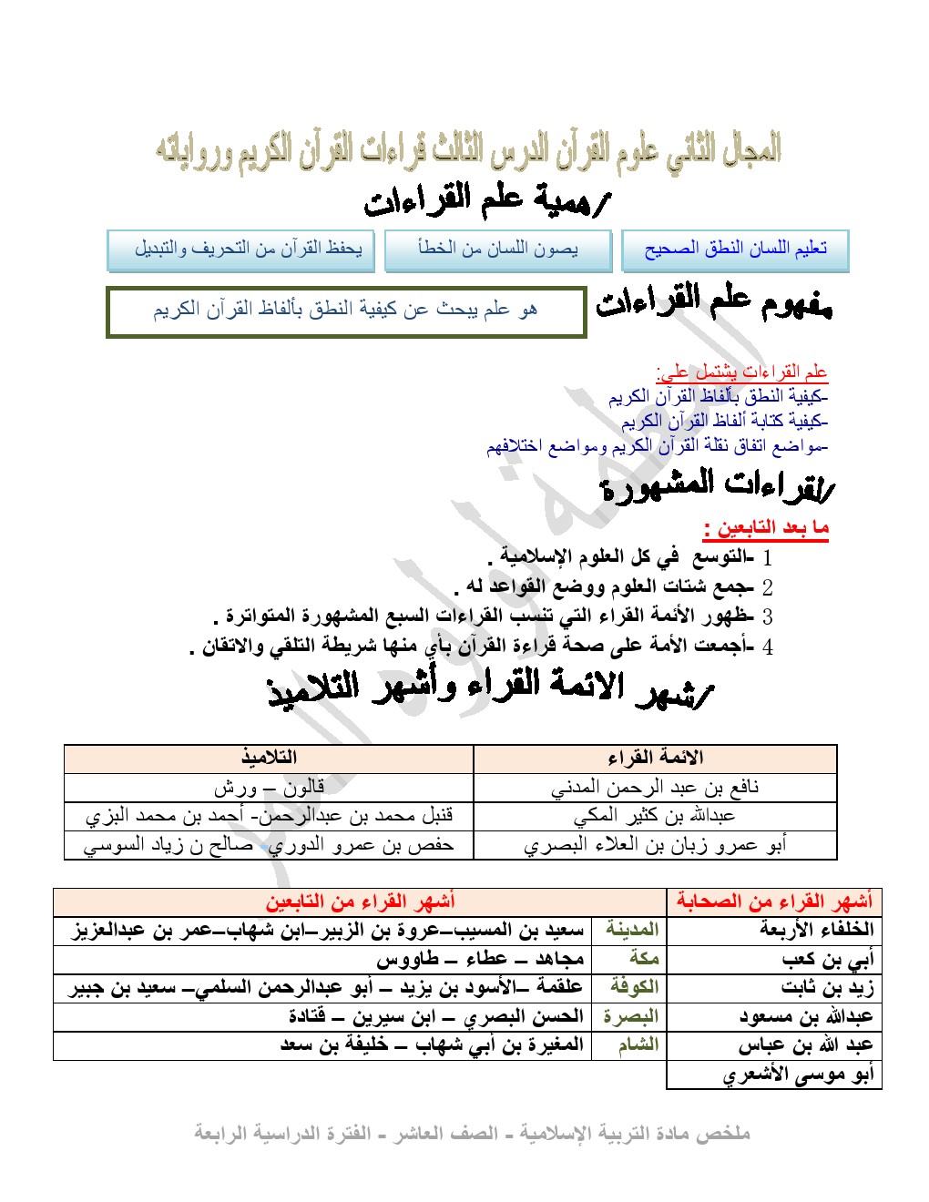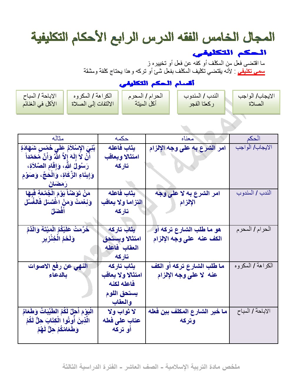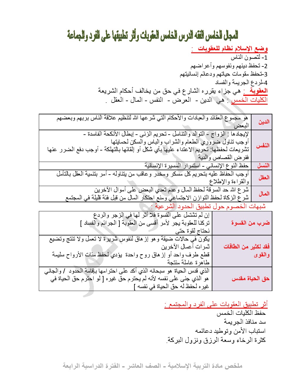 أحدث ملفات الصف العاشر, تربية اسلامية, الفصل الثاني