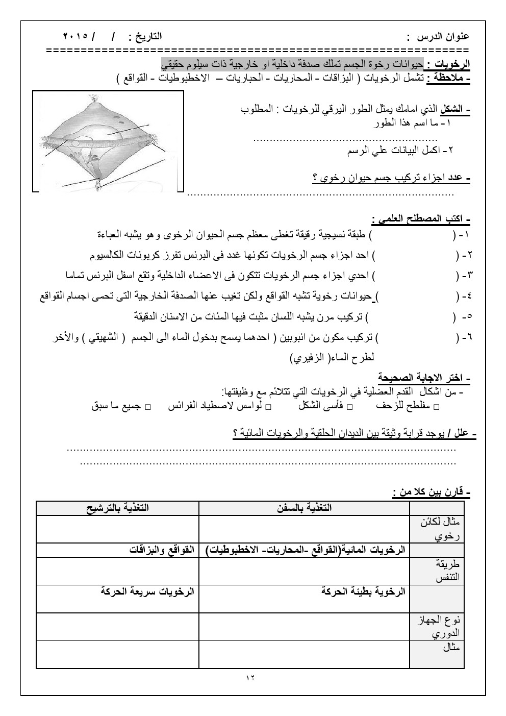 11. مذكرة وحدة مقدمة إلى المملكة الحيوانية وخصائصها