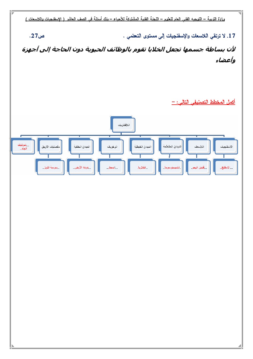 بنك اسئلة في مادة الاحياء للصف العاشر للفصل الدراسي الثاني عدد اوراق هذا الملف 129 ورقة وتتضمن بنك احياء الاسفنجيات واللاسعات