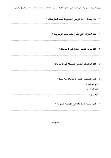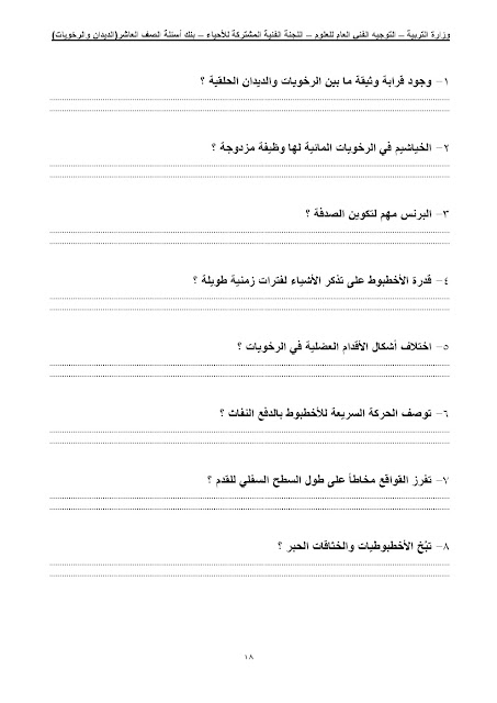 بنك اسئلة في مادة الاحياء للصف العاشر للفصل الدراسي الثاني عدد اوراق هذا الملف 20 ورقة وتتضمن الديدان والرخويات