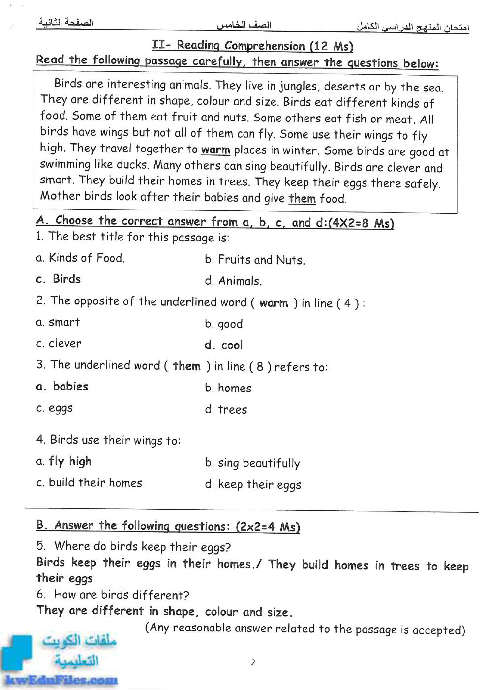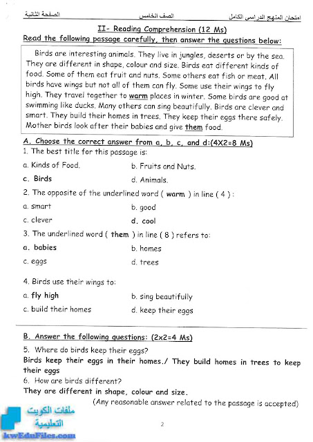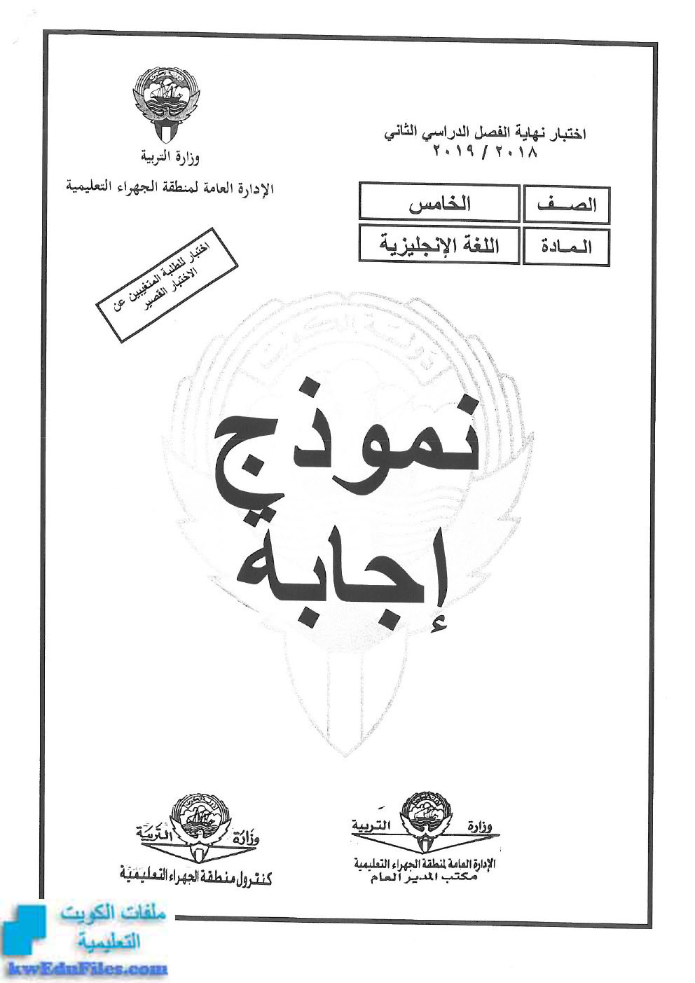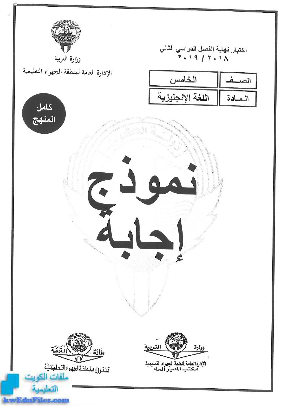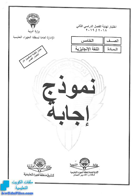 معلومات الملف: إليكم نموذج اجابة اللغة الانجليزية - فصل ثاني 20182019 منطقة مبارك الكبير | ||