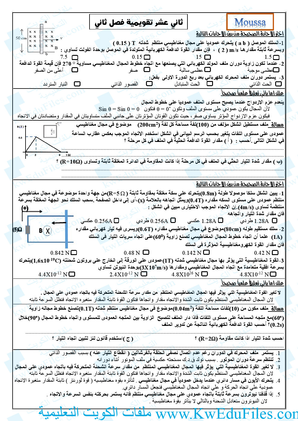 أحدث ملفات الصف الثاني عشر العلمي, فيزياء, الفصل الثاني
