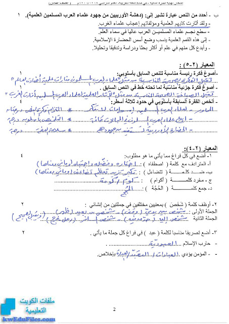 2. نموذج اسئلة منطقة الأحمدي التعليمية