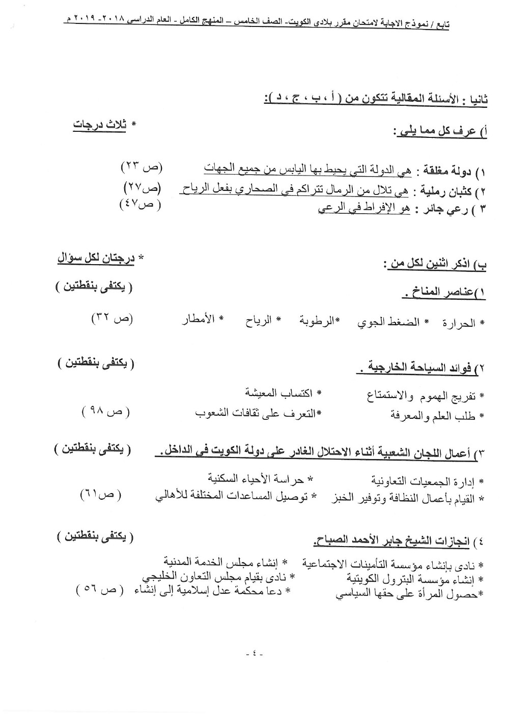 نموذج اجابة الجهراء - إعداد: منطقة الجهراء التعليمية