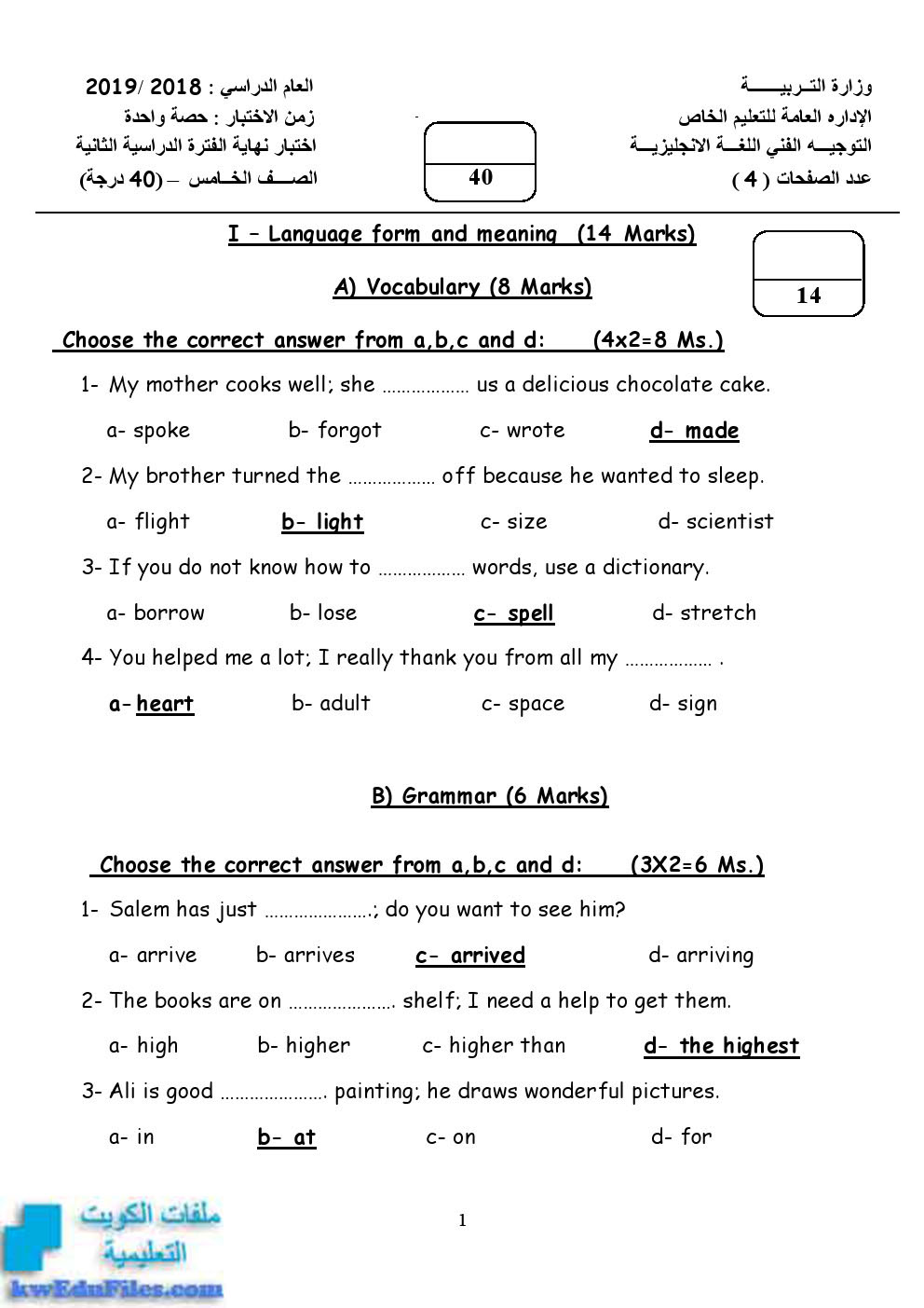أحدث ملفات الصف الخامس, لغة انجليزية, الفصل الثاني