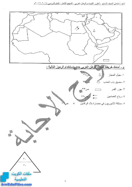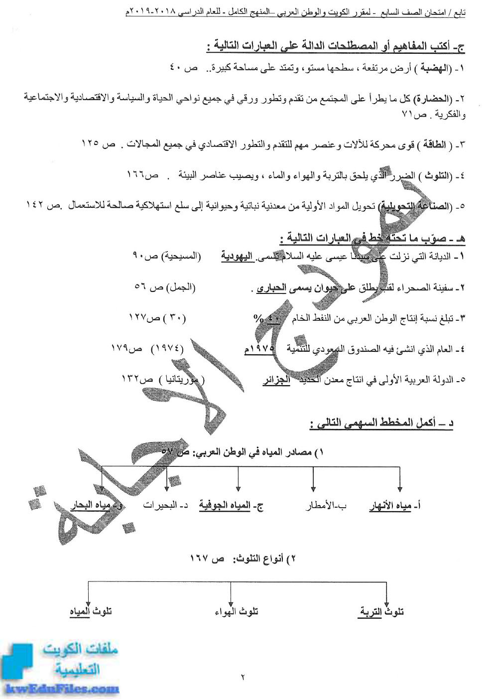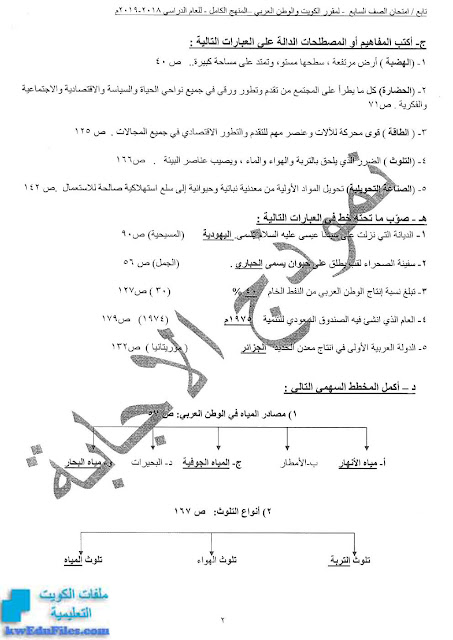 اليكم نموذج اجابة لمادة الاجتماعيات للصف السابع - الفصل الثاني من العام الدراسي 2018/2019