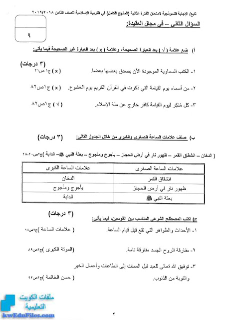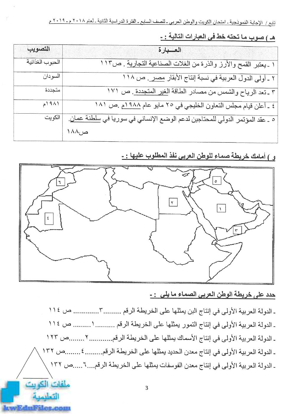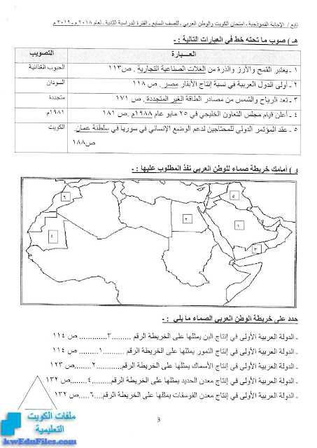 3. نموذج إجابة منطقة الفروانية التعليمية