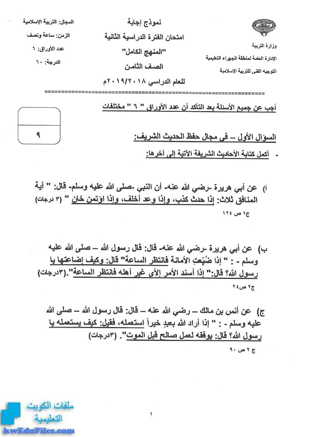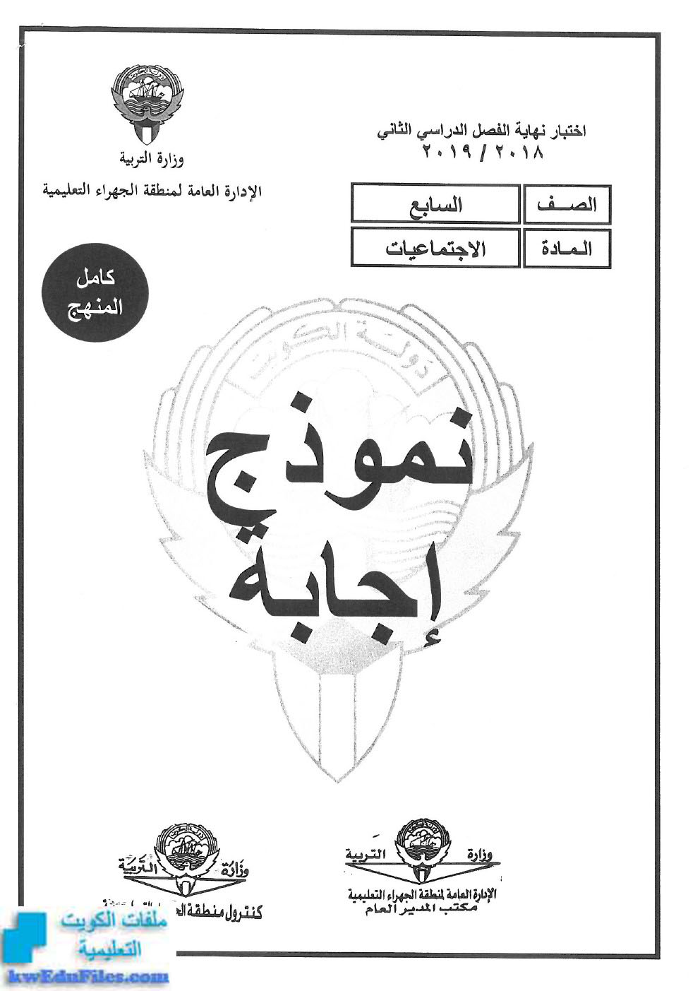 نموذج اجابة الفروانية مع المنهج الكامل والاسئلة - إعداد: منطقة الفروانية التعليمية