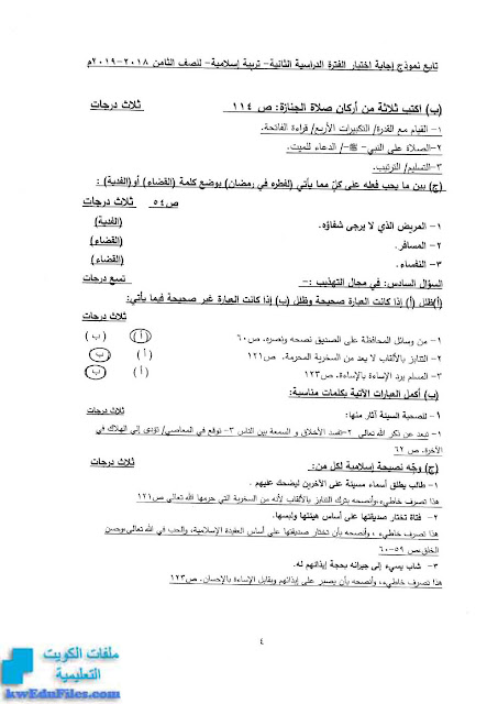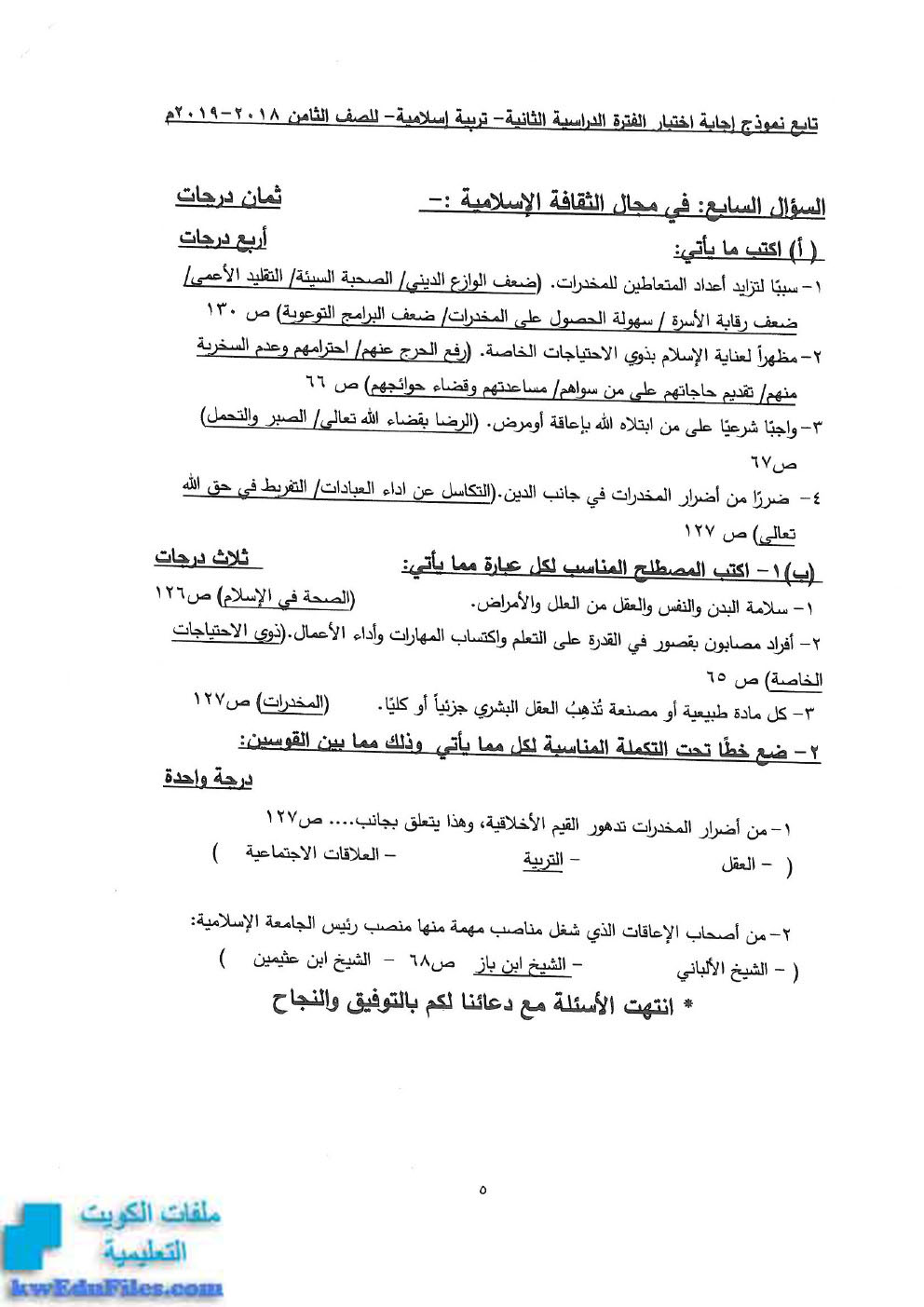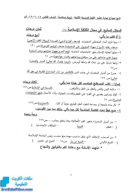8. نموذج إجابة منطقة الجهراء التعليمية
