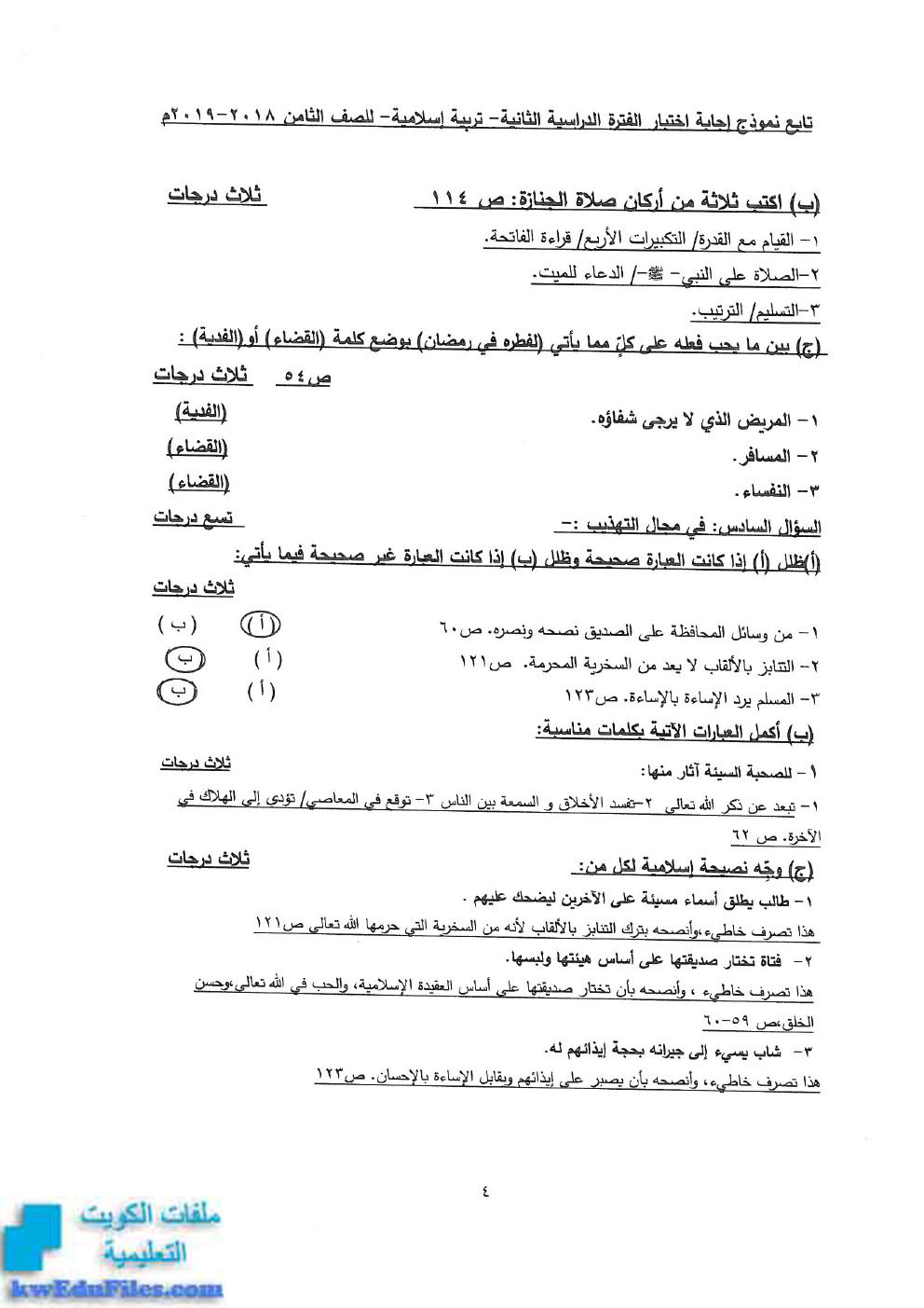 أحدث ملفات الصف الثامن, تربية اسلامية, الفصل الثاني