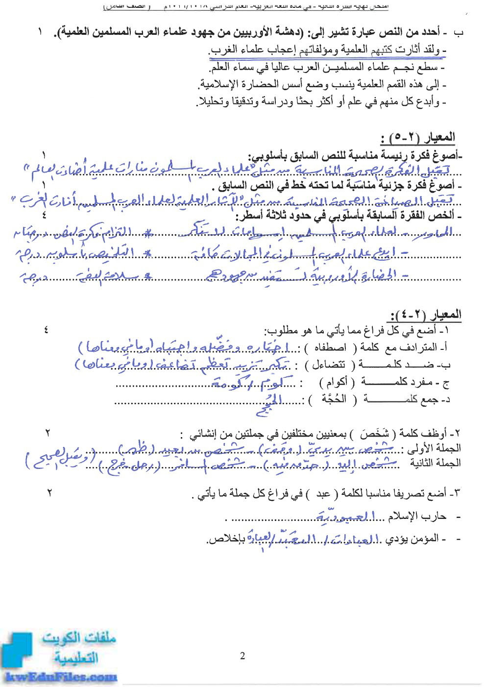 نموذج اجابة حولي - إعداد: منطقة حولي التعليمية