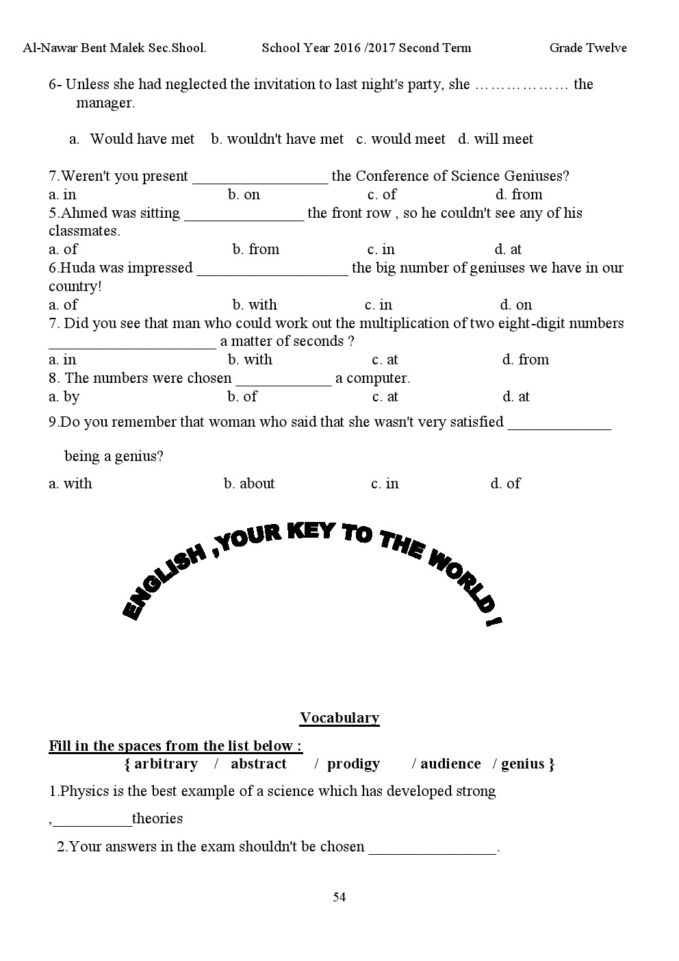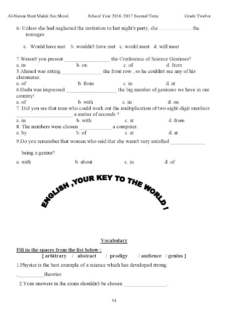 أنت تتصفح الملف الأول في الصف الثاني عشر | الملف الحالي: 49 | التالي: نموذج اختبار قصير أول من العشماوي |
