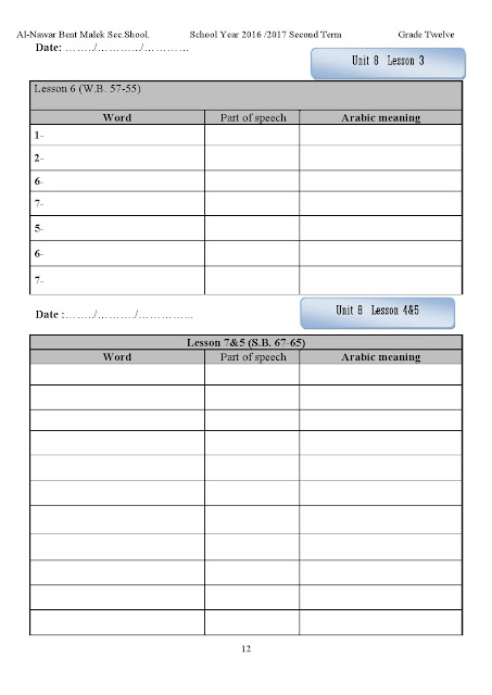 أكثر خمس كلمات زيارة اليوم بحسب: لغة انجليزية - الصف الثاني عشر - الفصل الثاني | |