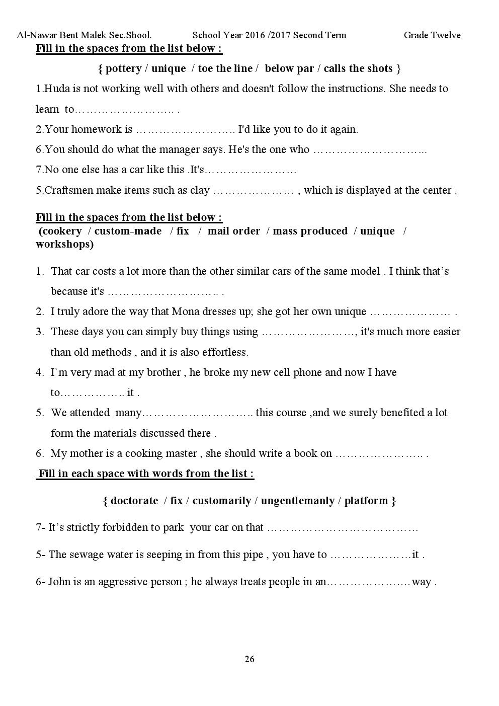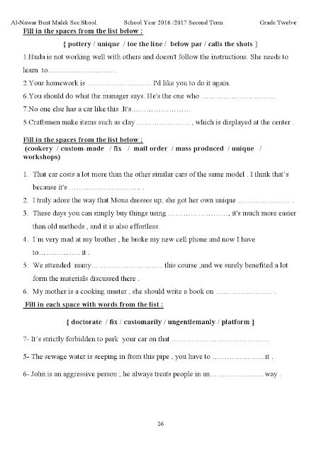 أنت هنا: موقع المناهج ⇦ المناهج الكويتية ⇦ الصف الثاني عشر ⇦ لغة انجليزية ⇦ الفصل الثاني ⇦ مذكرات وبنوك |