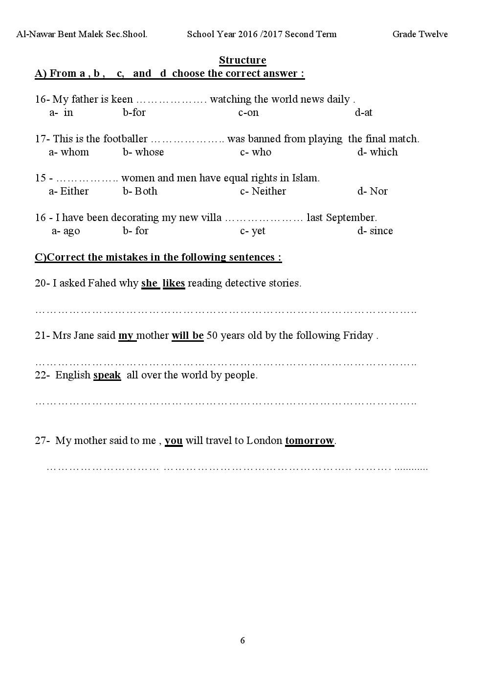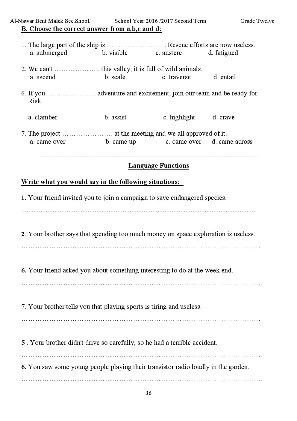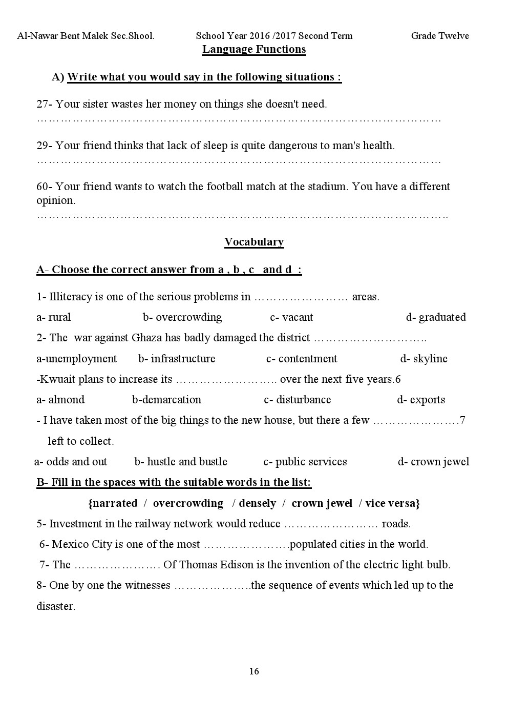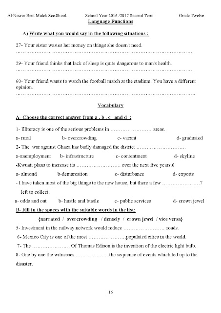 | أنت تتصفح الملف الأول في الصف الثاني عشر | الملف الحالي: 49 | التالي: بنك أسئلة الوظائف اللغوية |