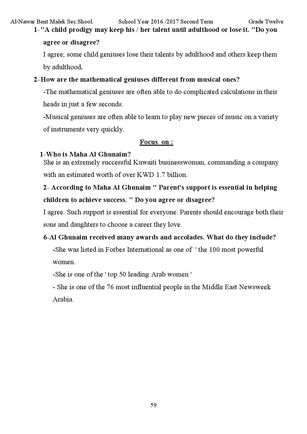 تم إيجاد الملف: مذكرة ثانوية النوار بنت مالك