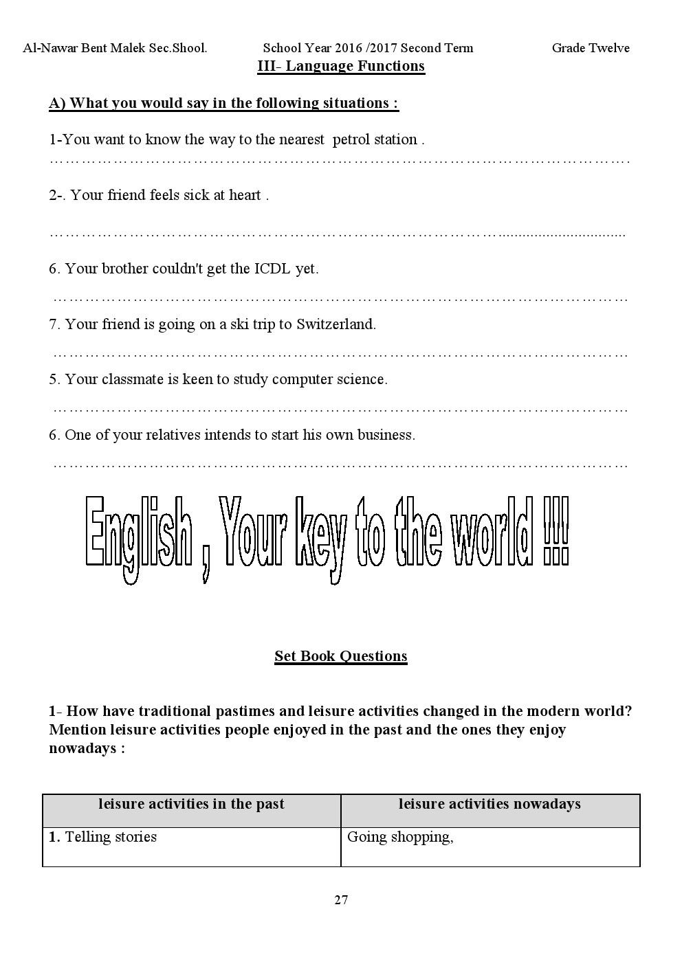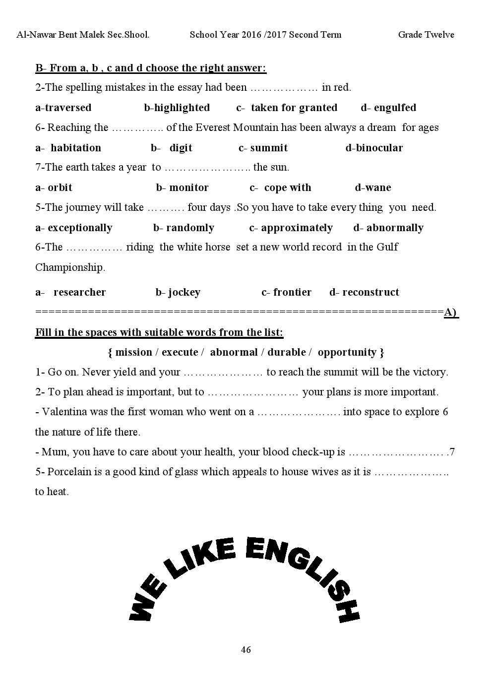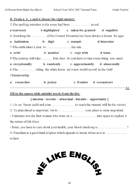 | أنت هنا: موقع المناهج ⇦ المناهج الكويتية ⇦ الصف الثاني عشر ⇦ لغة انجليزية ⇦ الفصل الثاني ⇦ مذكرات وبنوك |