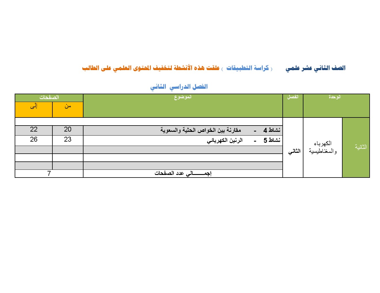 | الصف الثاني عشر العلمي | ||