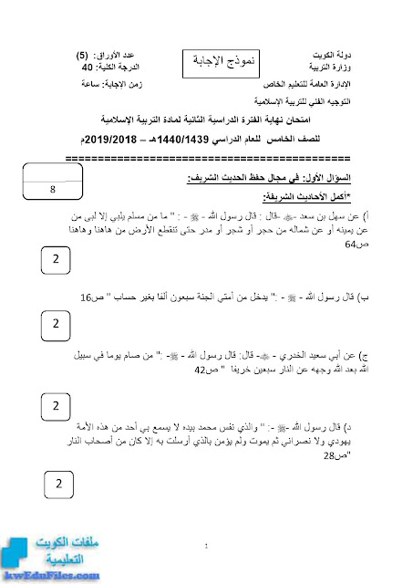 أحدث ملفات الصف الخامس, تربية اسلامية, الفصل الثاني