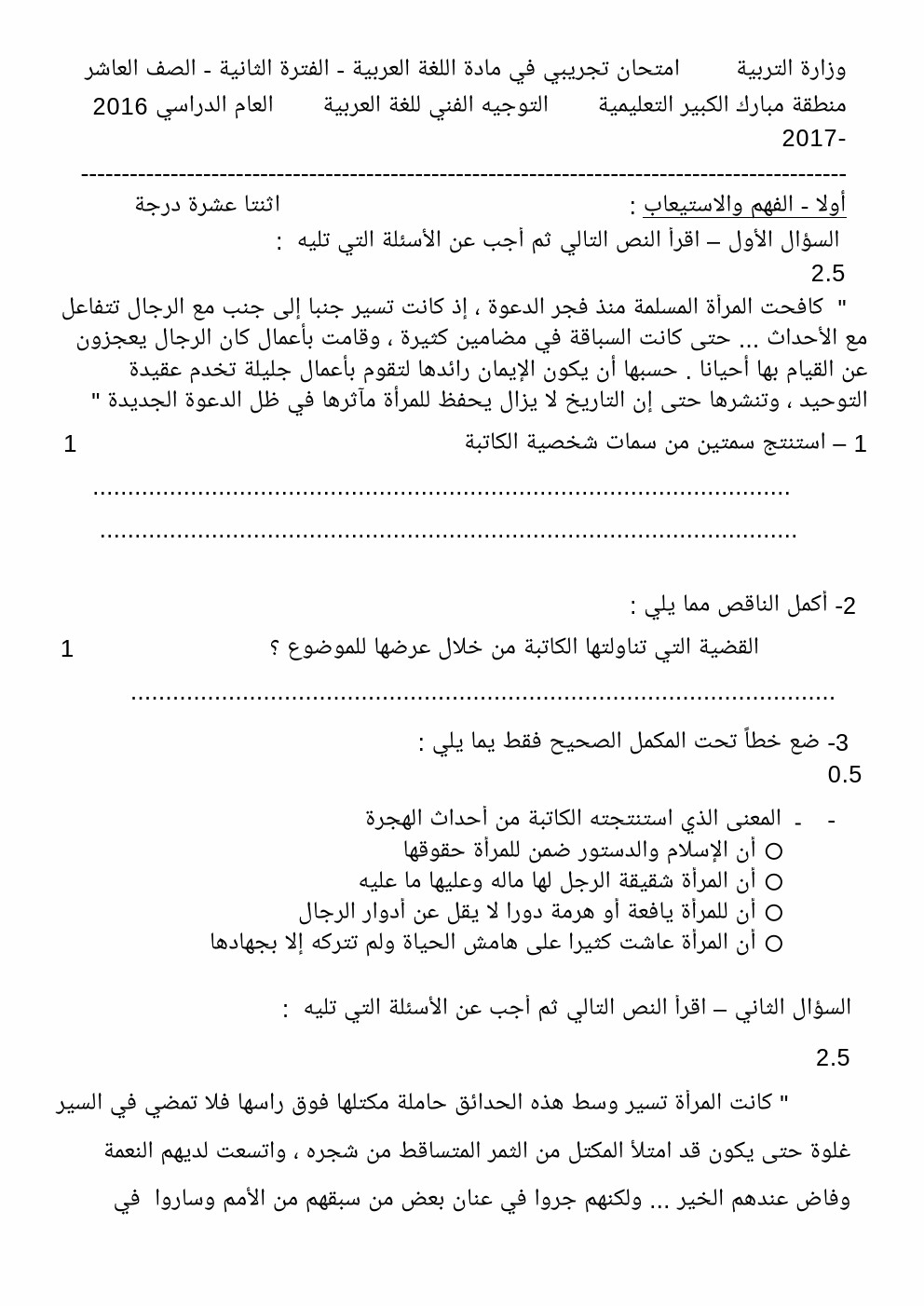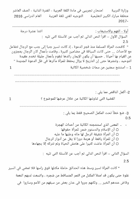 معلومات الملف: امتحان تجريبي في مادة اللغة العربية للصضف العاشر للفصل الدراسي الثاني عدد اوراق هذا الملف 11 ورقة ويتضمن نموذج2 | ||